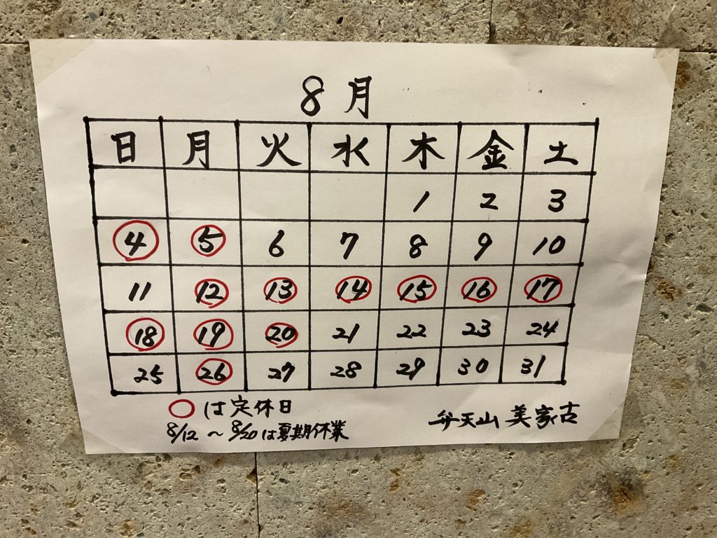 8月の定休日 - 浅草江戸前寿司|弁天山美家古寿司