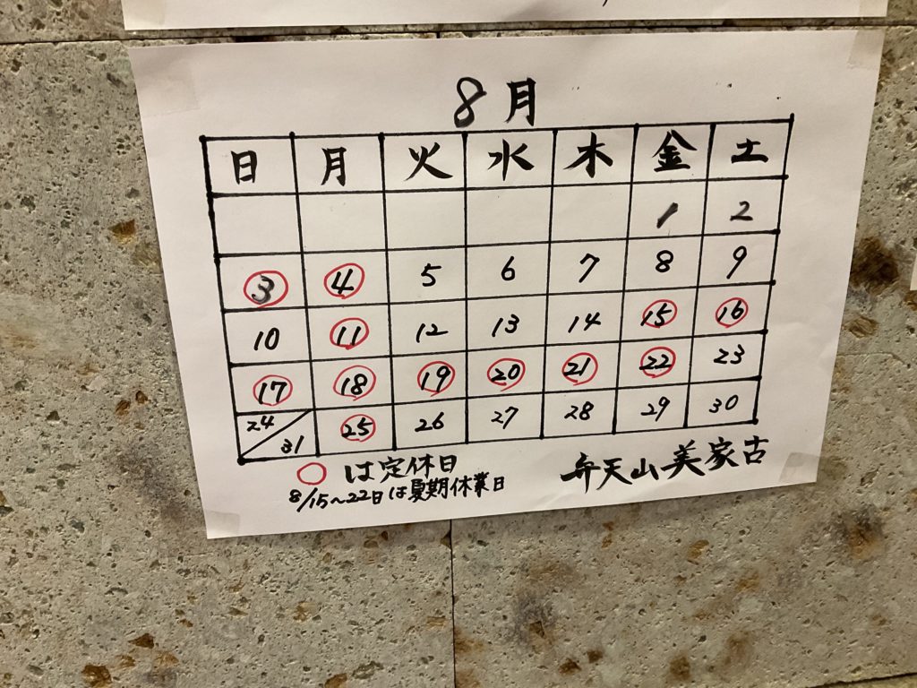 8月の定休日 - 浅草江戸前寿司|弁天山美家古寿司